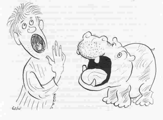 Den Gähnreflex kann man bewusst auszulösen: Man öffnet den Mund weit wie für ein „O“, zieht die Oberlippe etwas herunter, so als wollte man eine Luftkugel in den Mund nehmen, und senkt den Unterkiefer. Durch den geöffneten Mund wird Luft etwas stoßweise eingezogen „oah oah oah“ - und wenn der Reflex ausgelöst wird, setzt sich die Weitung im Hals- und Gürtelbereich fort, das Zwerchfell dehnt die Lunge aus - man gähnt: „oahoah oah“. Die Weitung, wie sie beim Gähnen erfolgt, ist die optimale Einstellung fürs Sprechen: Das Zwerchfell ist aktiv, der Kehlkopf tiefgestellt, der Hals-, Rachen- und Mundraum weit. (c) Pabst-Weinschenk 2001/2004 |