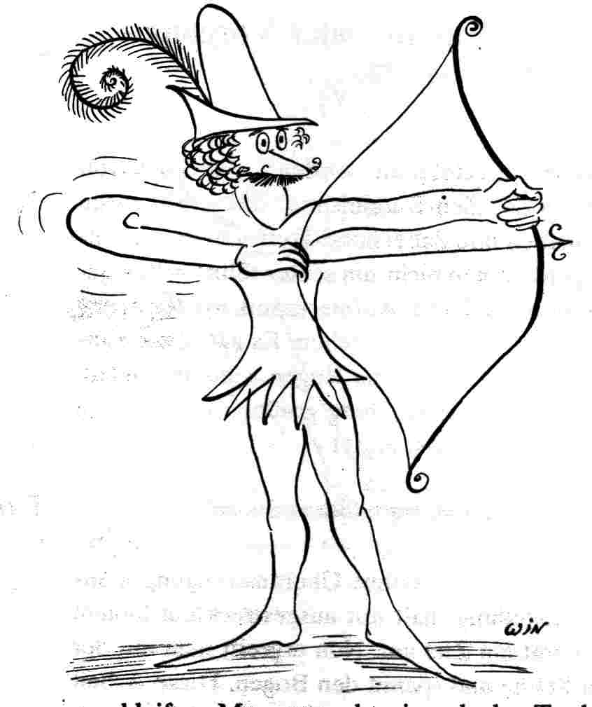 An dieser Station sollen Wörter wie mit Pfeil und Bogen oder einer Flitsche losgeschossen werden. Man ahmt die Tätigkeit nach und schießt Wort für Wort los, z. B.: „Kommen / sehen / siegen ...“ Auch dabei praktiziert man das Abspannen: Mit dem Lösen der Spannung wird jeweils das Wort gesprochen, dann ist Pause. Gelingt das Abspannen aus der inneren Vorstellung nicht auf Anhieb, ist es empfehlenswert, den Bewegungsablauf durch Requisiten zu unterstützen, z. B. durch das Spannen eines elastischen Bandes (Zauberschnur, Expanderband oder einfach ein dickes Gummi von einem Einweckglas) oder eines richtigen Bogens.