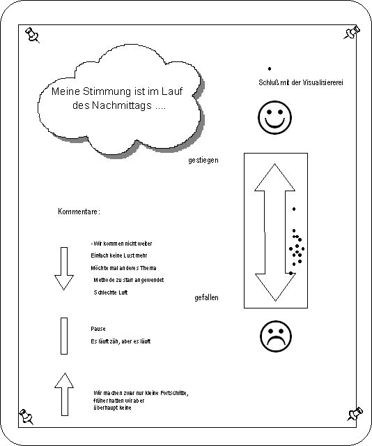 Plakate, mit denen der Moderator seine Informationseingaben unterstützt